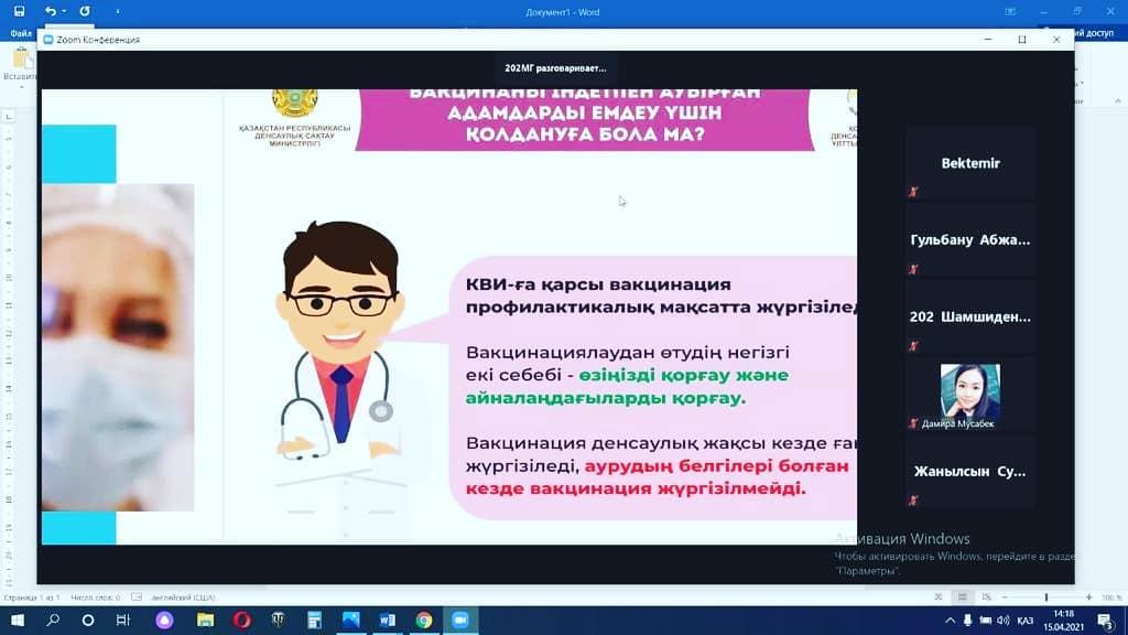 Қазақстан Вакциналау. КВИ-ға қарсы вакцинация профилактикалық мақсатта жүргізіледі. Вакцинациялаудан өтудің негізгі екі себебі - өзіңізді қорғау және айналандағыларды қоғау. Вакцинация денсаулық жақсы кезде ғана жүргізіледі, аурудың белгілері болған кезде вакцинация жүргізілмейді. Екпе салар алдында медецина қызметкері егілетін адамды міндетті түрде қарап-тексереді. Медециналық қарсы көрсетілімдер болған жағдайда сауыққанан кейін ғана екпе салдырады.
