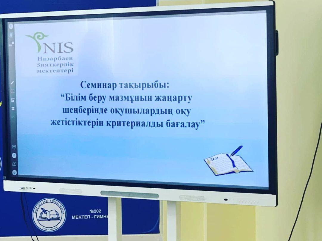 02.11 күні Педагогикалық шеберлік орталығының Алматы қалалық филиалының директоры Асубаев Берік Құттыбайұлымен " Білім беру мазмұнын жаңарту шеңберінде оқушылардың оқу жетістіктерін критериалды бағалау" тақырыбында семинар өтті.
