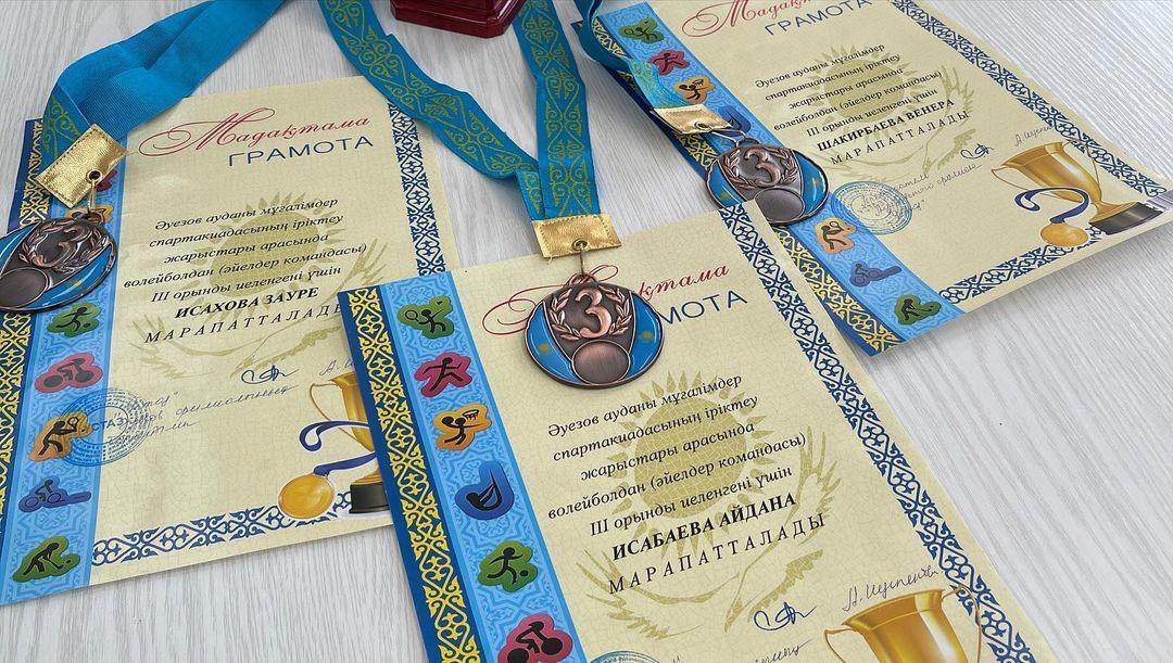 08 октябрь 2021 0 1 2 3 4 5 Мұғалімдер спартакиадасы Әуезов ауданы мұғалімдер спартакиадасының іріктеу жарыстары арасында волейболдан (әйелдер командасы) ІІІ орынды иеленгені үшін мектебіміздің әйелдер командасы марапатталды.