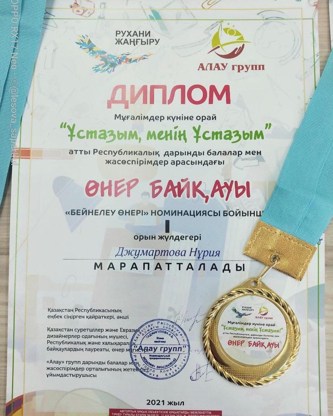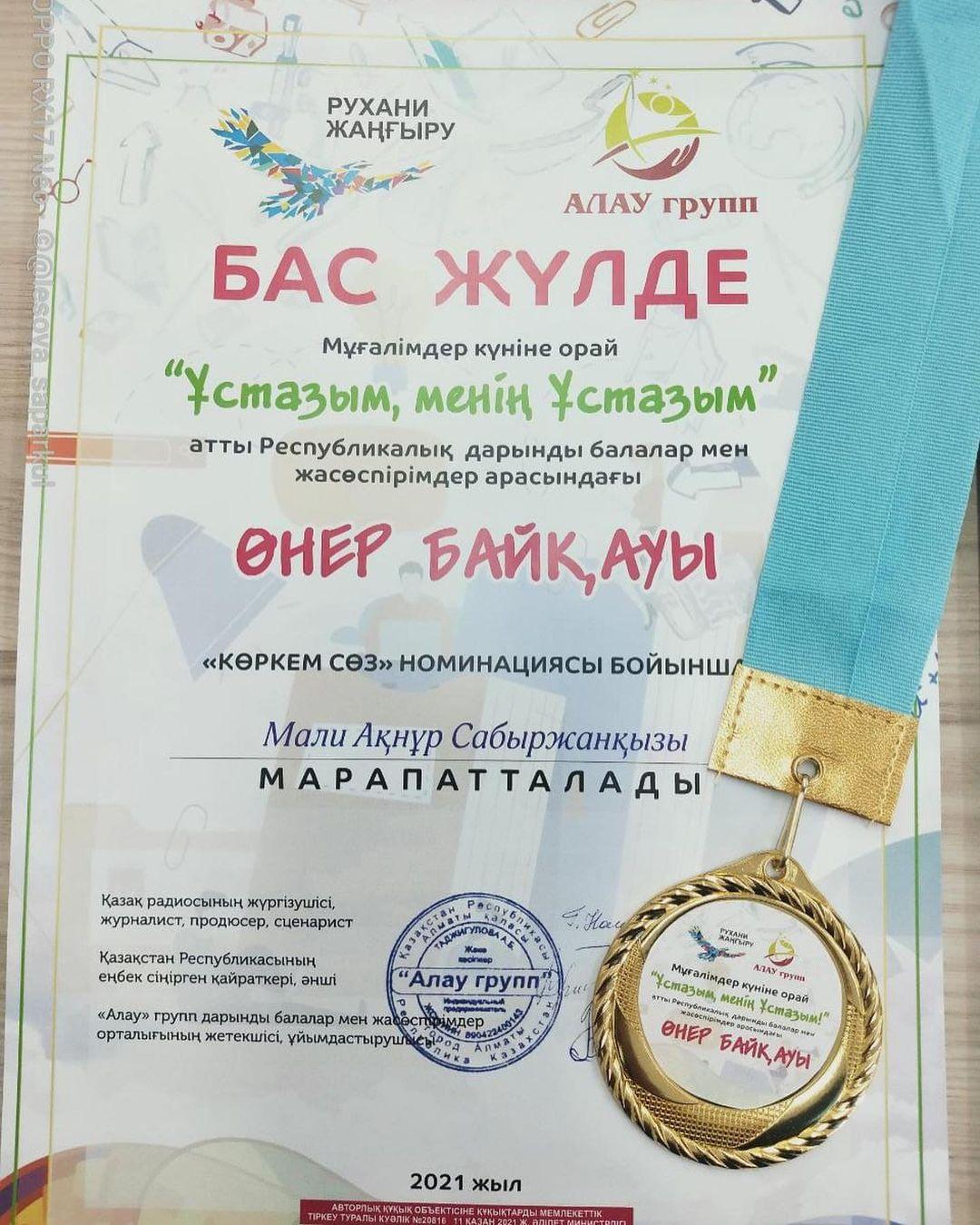 25 октябрь 2021 0 1 2 3 4 5 «Ұстазым менің Ұстазым» 6 "В" Усенова Дилназа апайдың сыныбынан «Ұстазым менің Ұстазым» байқауына қатысып жүлделі орындарға ие болған оқушыларымыз Мали Ақнұр Сабыржанқызы мен Джумартова Нұрияны шын жүректен құттықтаймыз👏👏Мектебіміздің мақтаныштары көбейе берсін…