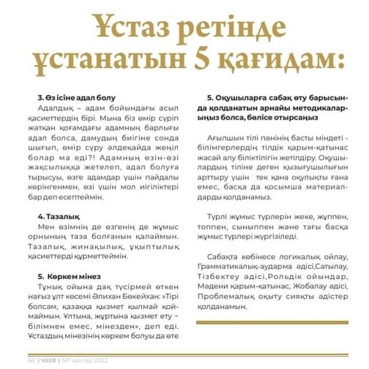 11 февраль 2022 0 1 2 3 4 5 “Сәлем” журналының 1.02.2022 күні шыққан алғашқы саны “Сәлем” журналының 1.02.2022 күні шыққан алғашқы санына мектебіміздің ағылшын тілі пән мұғалімі Арай Өмірбекқызымен бастауыш сынып мұғалімі Абжанова Гулбану мұғалімдеріміздің сұхбаты жарияланды.