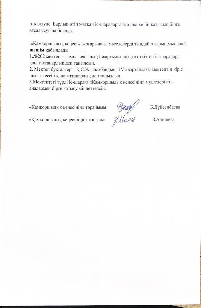 "Қамқоршылық кеңес" отырысының №2 хаттамасы » №202 жалпы білім беретін мектеп