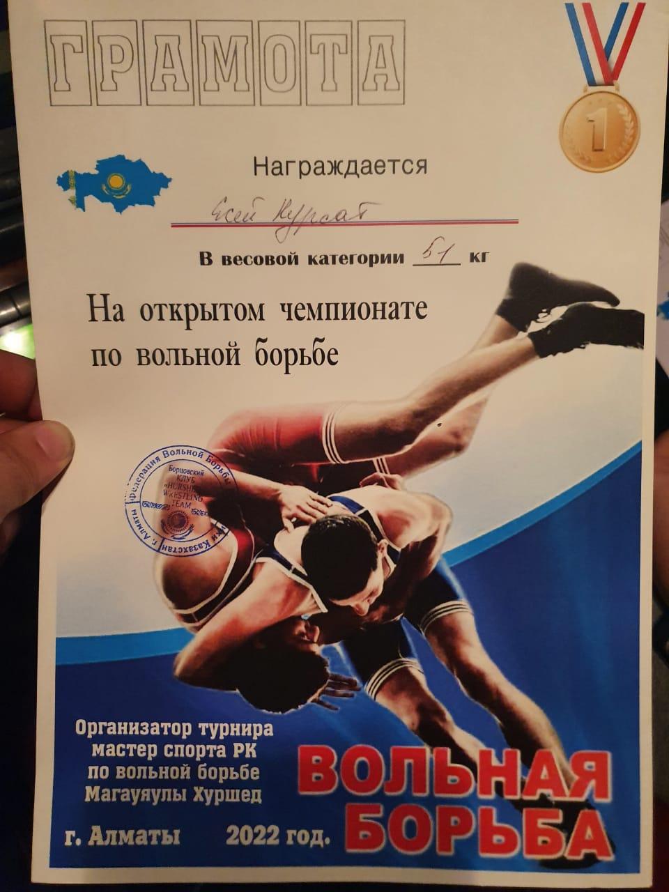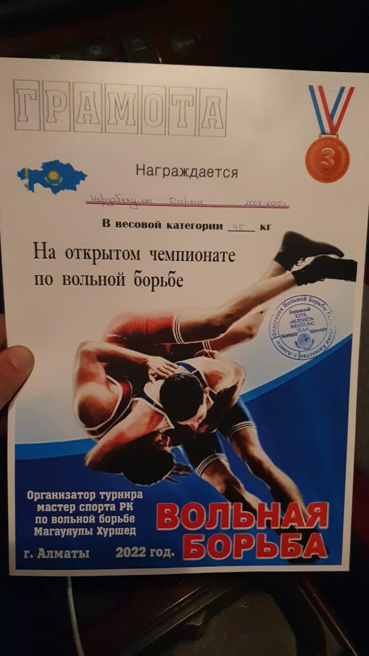 14 март 2022 0 1 2 3 4 5 Алматы және Алматы облысының еркін күрес командаларының қатысуымен өткен кіші жасөспірімдер арасында Еркін күрес өткен Алматы және Алматы облысының еркін күрес командаларының қатысуымен өткен кіші жасөспірімдер арасында Еркін күрес өткен біріншіліктен оқушыларымыз:ІІІ орын Есей НұрсәтІІІ орын Назарбекұлы Дарын иеленді.Спорт жетекшісі :Ғубайдулла Сағи