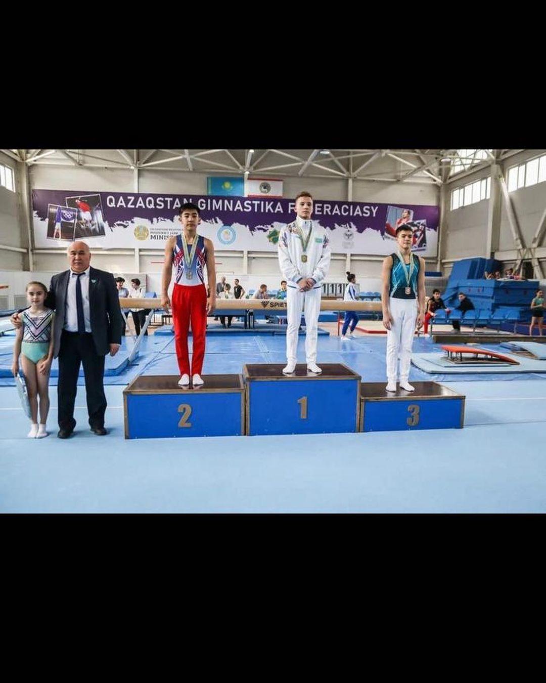 19 апрель 2022 0 1 2 3 4 5 Спорттық гимнастикадан ҚР-ның жеке-командалық Чемпионаты Спорттық гимнастикадан ҚР-ның жеке-командалық Чемпионатында 8 “Б” сынып оқушысы Адильбаев Әлибек күміс және қола жүлделерге ие болды. Командалық есепте Алматы құрамасы І орын алды. Шәкірттеріміздің жетістіктеріне қуанатын күндеріміз көп болсын!