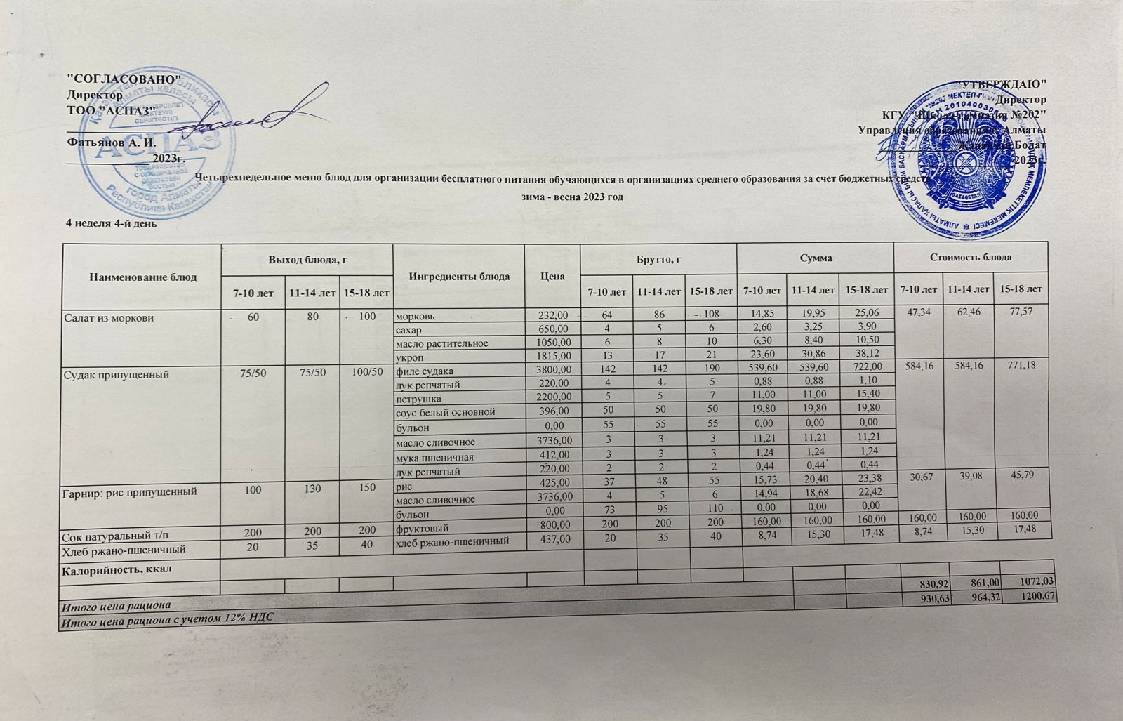Ас мәзірі қаңтар 2 наурыз » №202 жалпы білім беретін мектеп