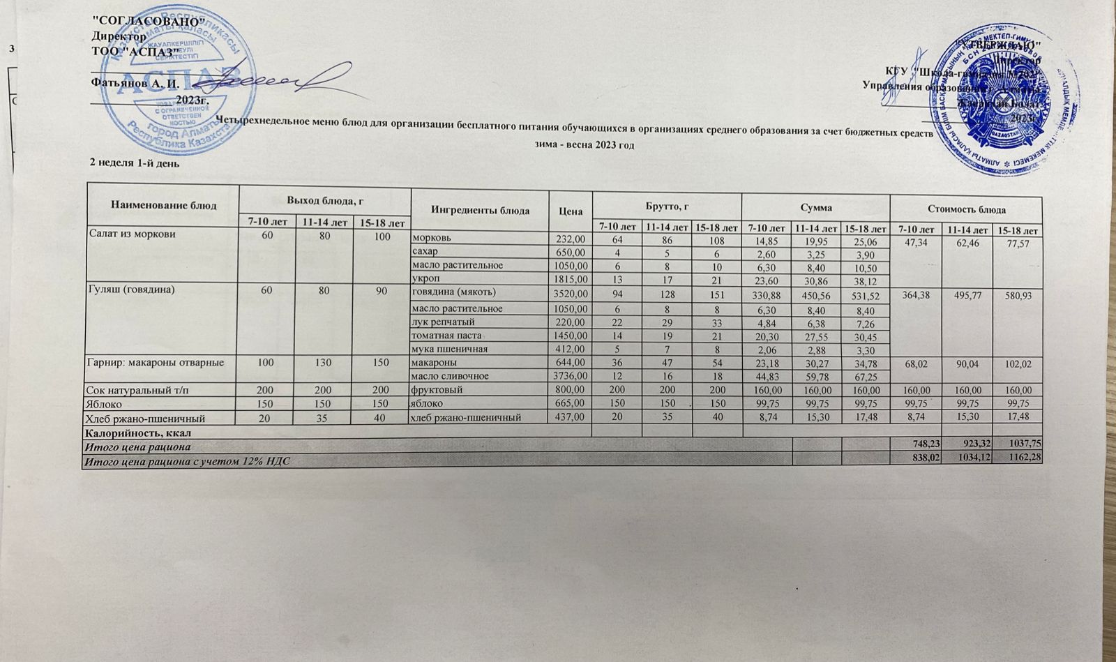 Ас мәзірі қаңтар 13 наурыз » №202 жалпы білім беретін мектеп
