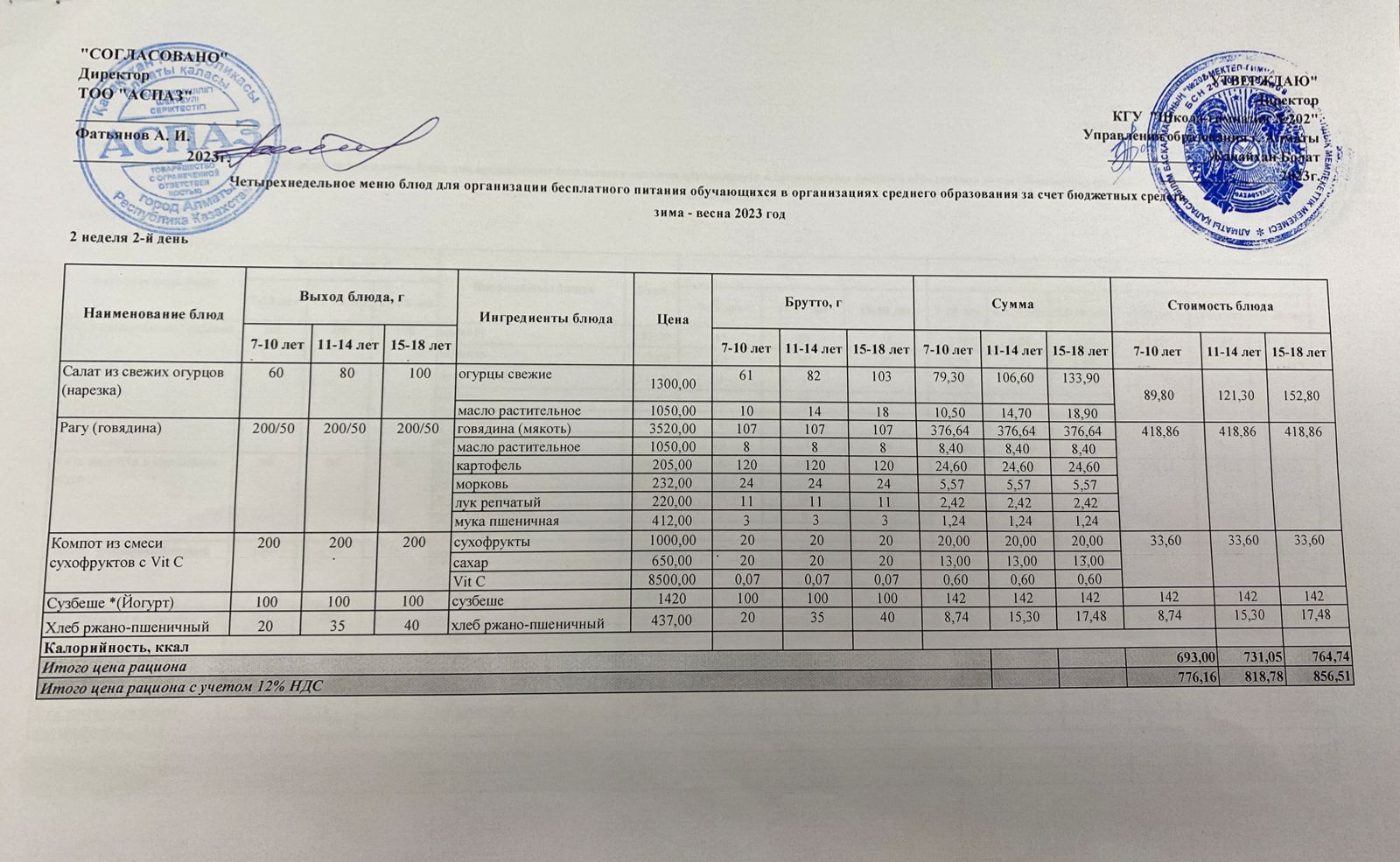 Ас мәзірі қаңтар 14 наурыз » №202 жалпы білім беретін мектеп