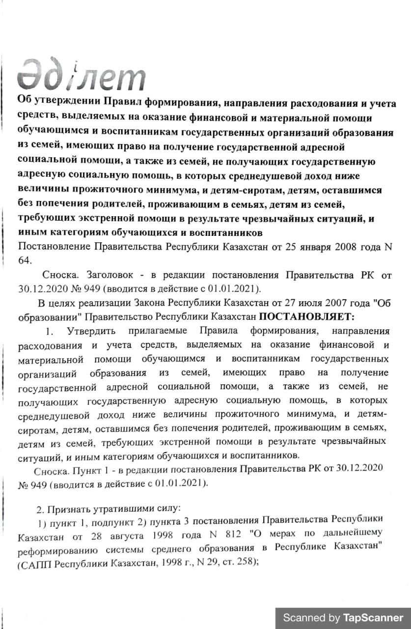 Әлеуметтік қызмет көрсету туралы қаулы. Енгізілген өзгерістер » №202 жалпы білім беретін мектеп