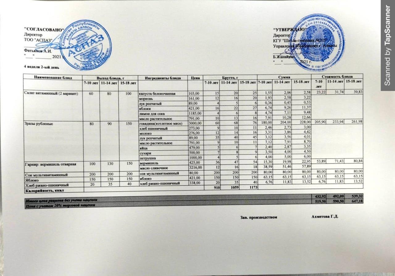Күнделікті ас мәзірі 21.12.2021 ж. » №202 жалпы білім беретін мектеп