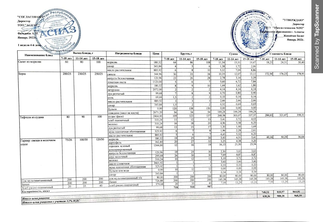 Күнделікті ас мәзірі 03.02.2022 » №202 жалпы білім беретін мектеп