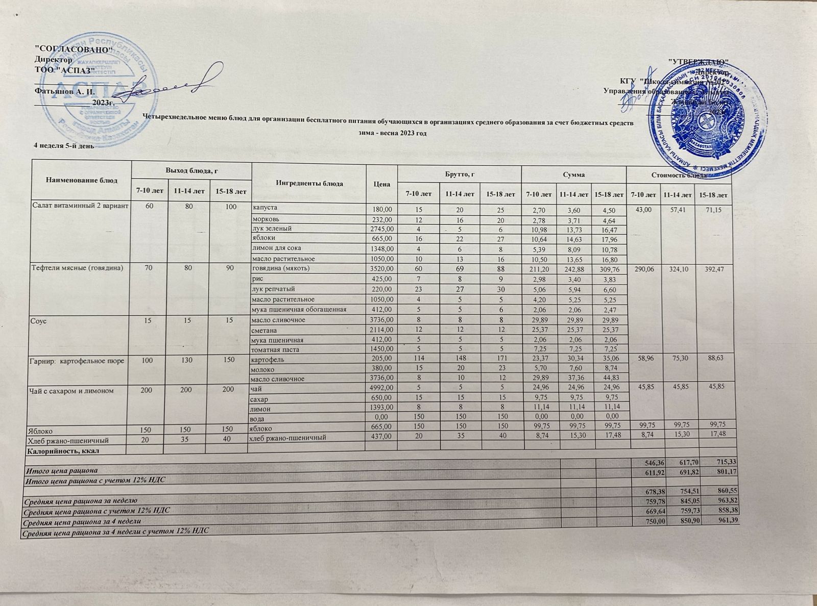 Ас мәзірі 28 сәуір » №202 жалпы білім беретін мектеп
