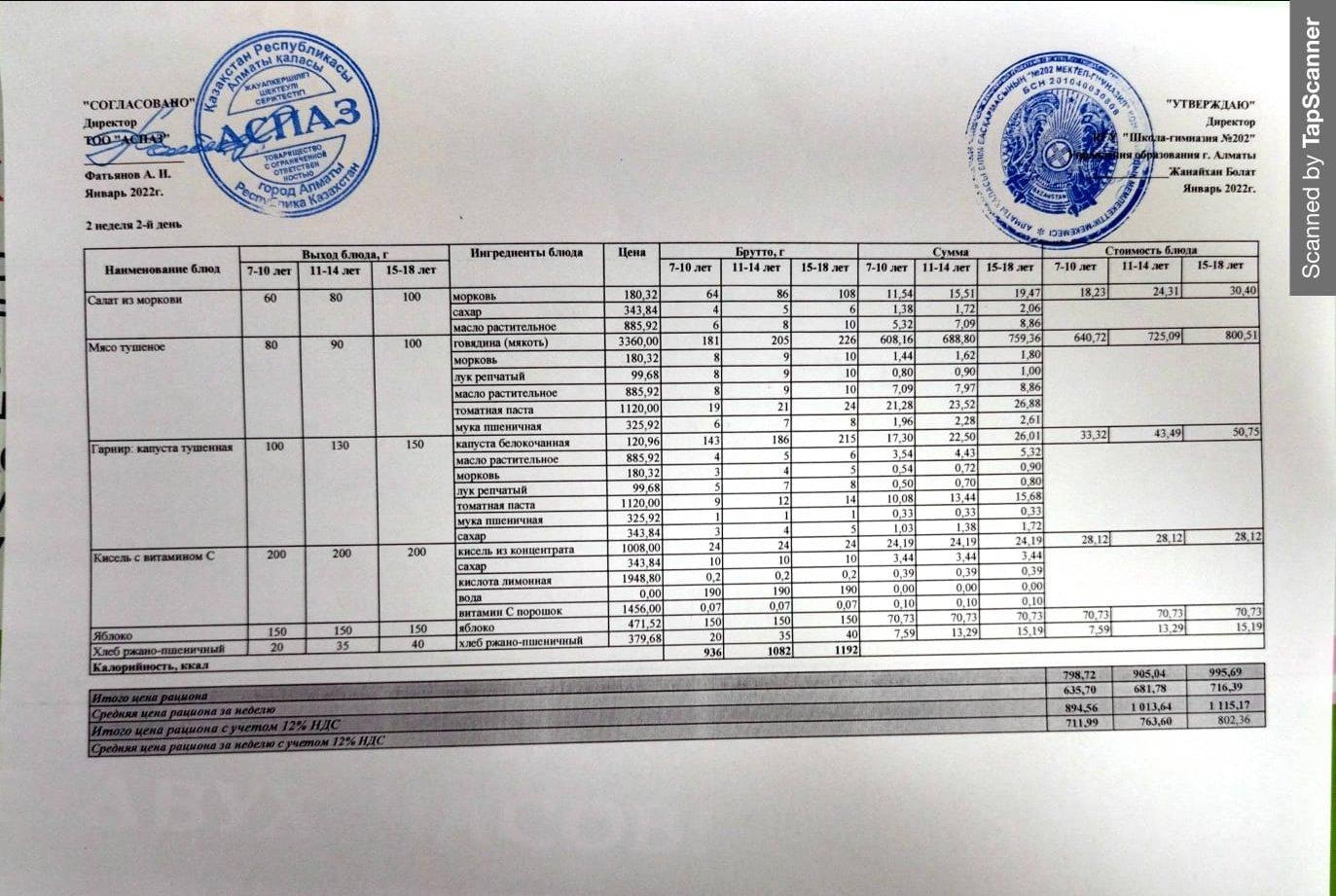 Күнделікті ас мәзірі 05.04.2022 » №202 жалпы білім беретін мектеп