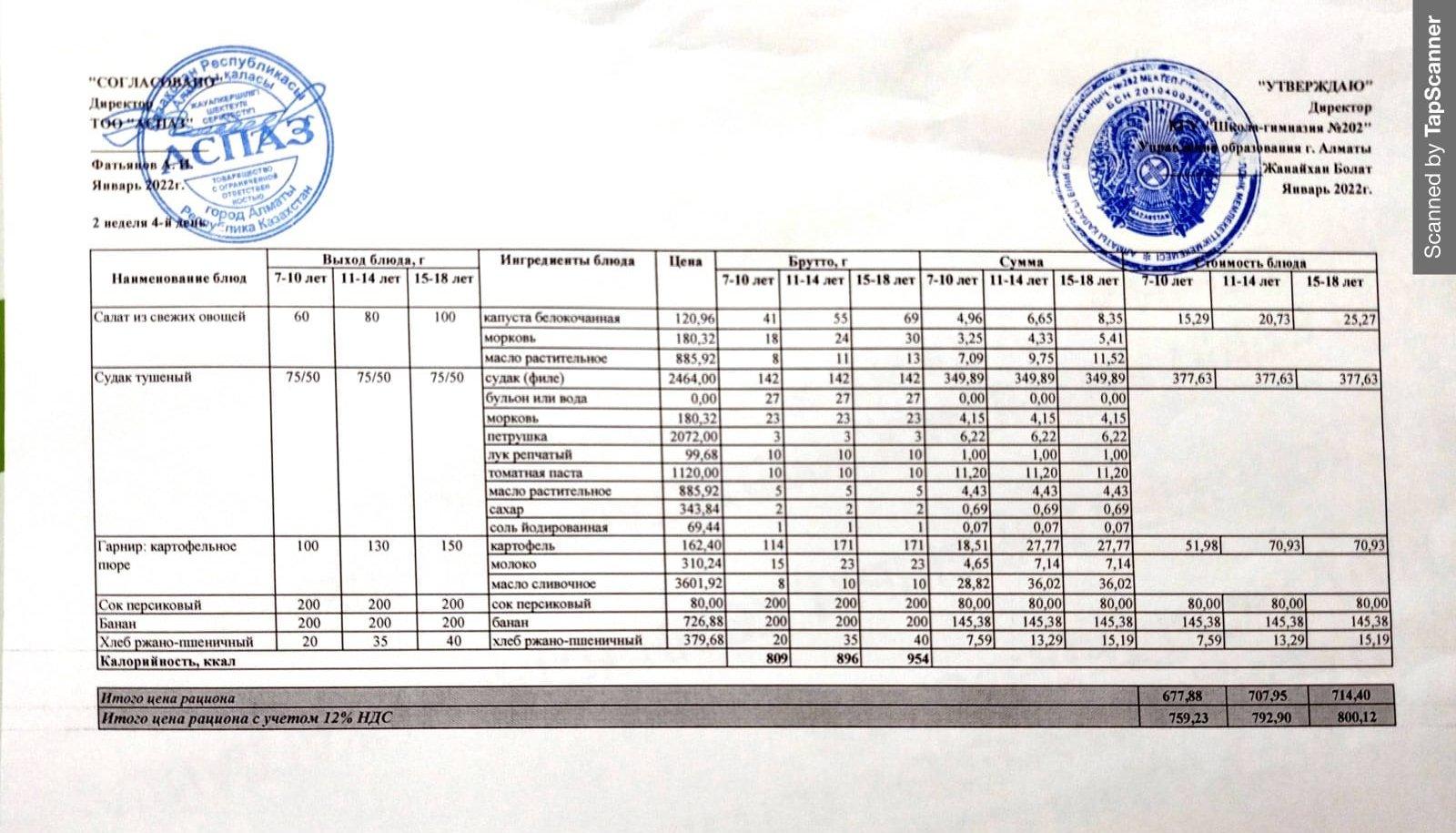 Күнделікті ас мәзірі 07.04.2022 » №202 жалпы білім беретін мектеп
