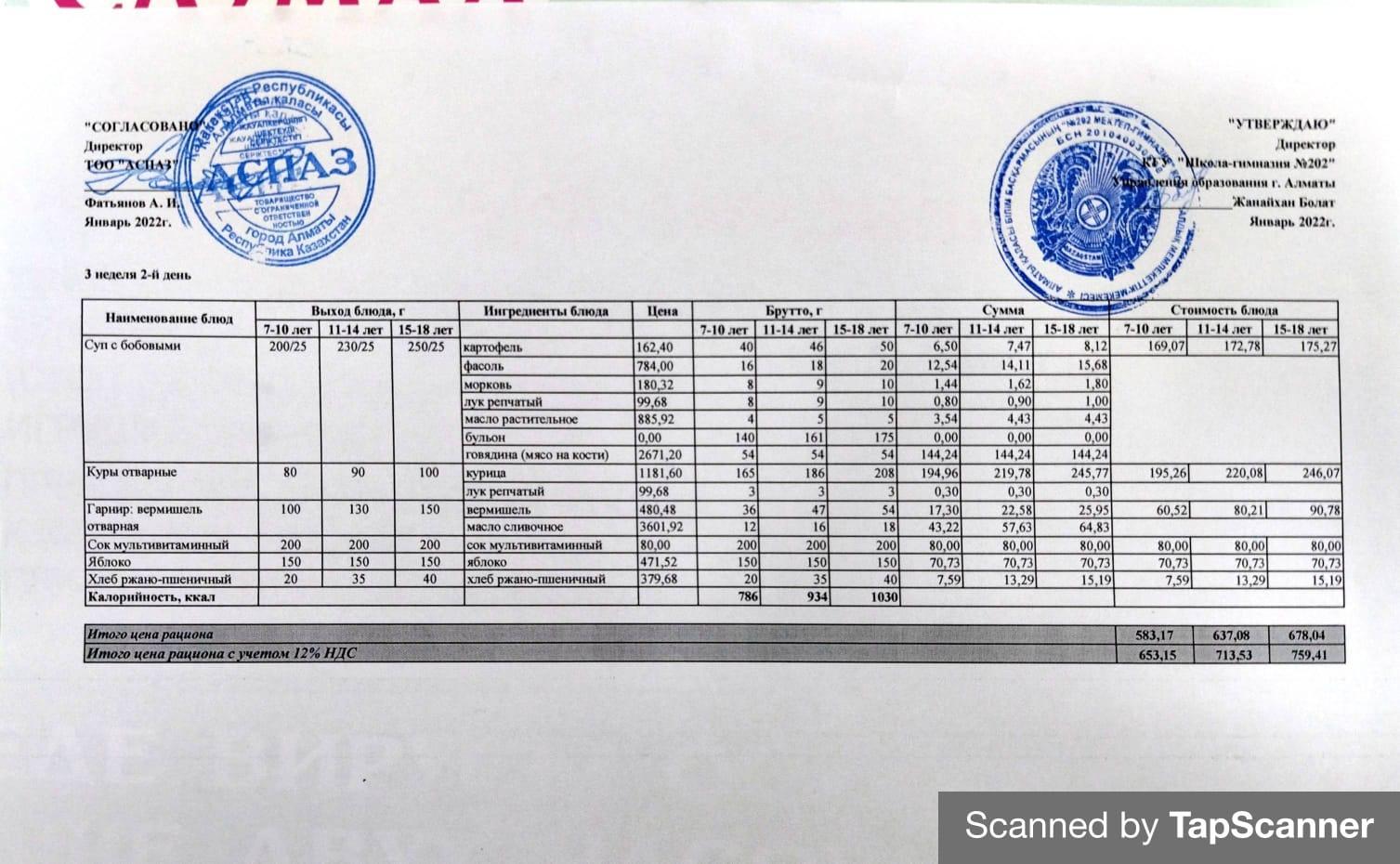 Күнделікті ас мәзірі 12.04.2022 » №202 жалпы білім беретін мектеп