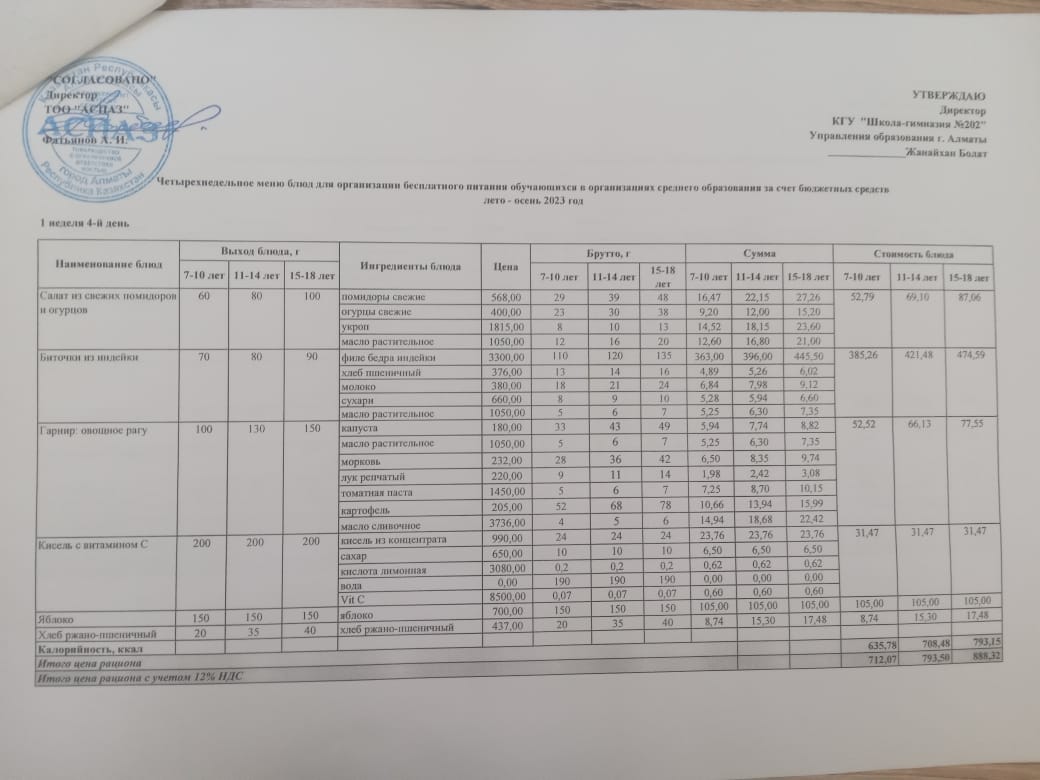 2023-2024 оқу жылындағы 5-қазан ас мәзірі » №202 жалпы білім беретін мектеп