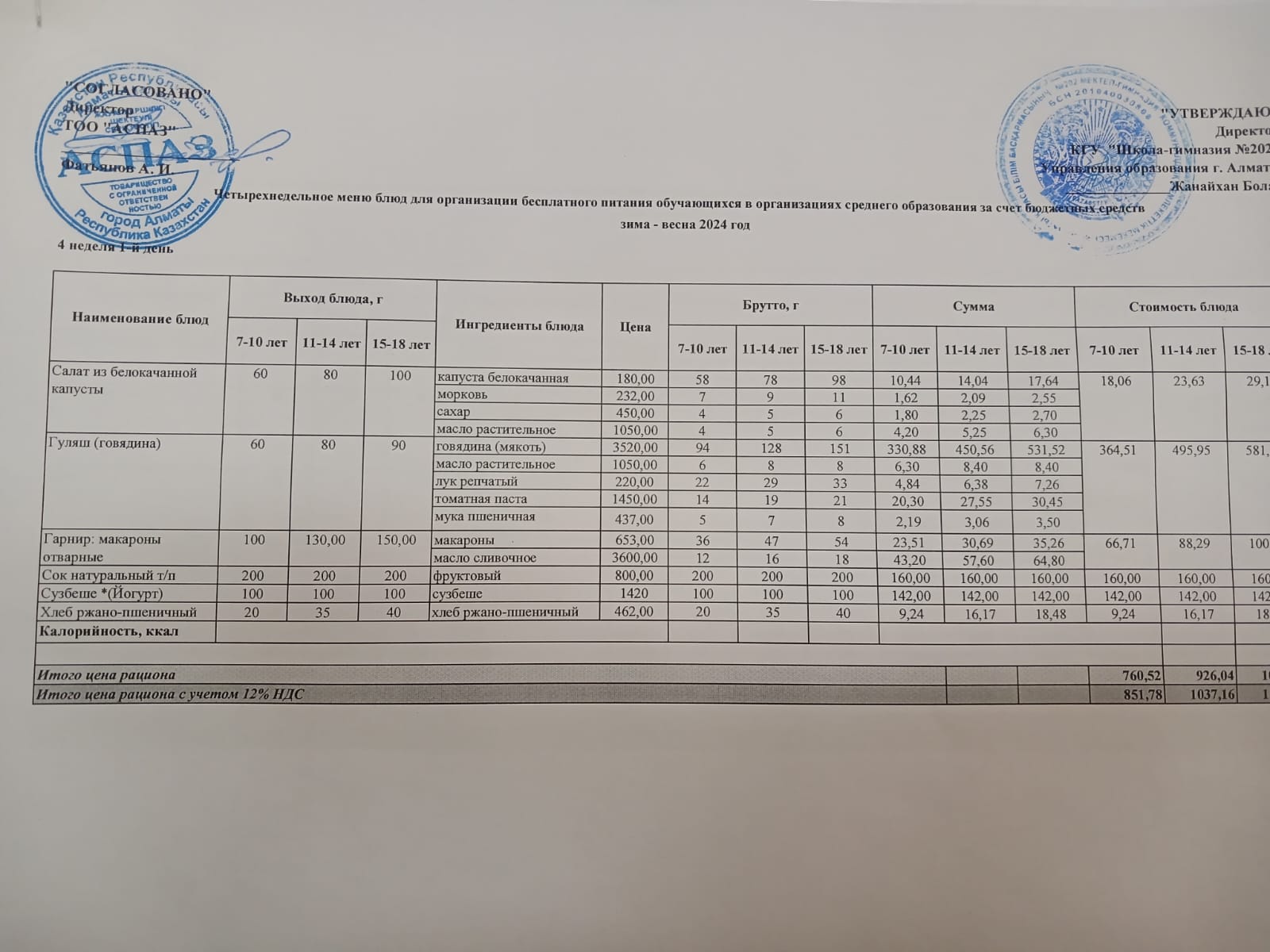 2023-2024 оқу жылы 22-қаңтар ас мәзірі » №202 жалпы білім беретін мектеп