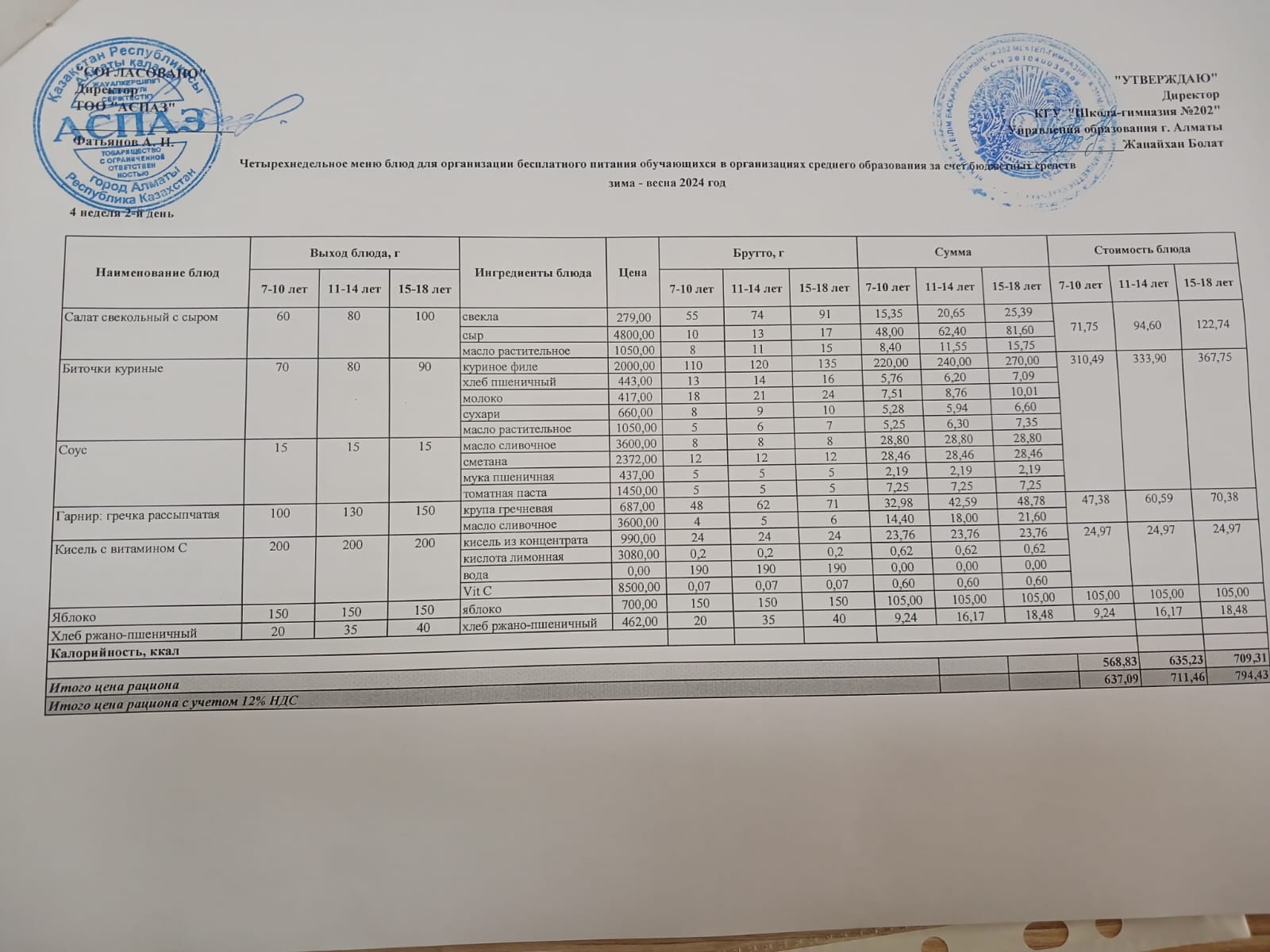 2023-2024 оқу жылы 23-қаңтар ас мәзірі » №202 жалпы білім беретін мектеп
