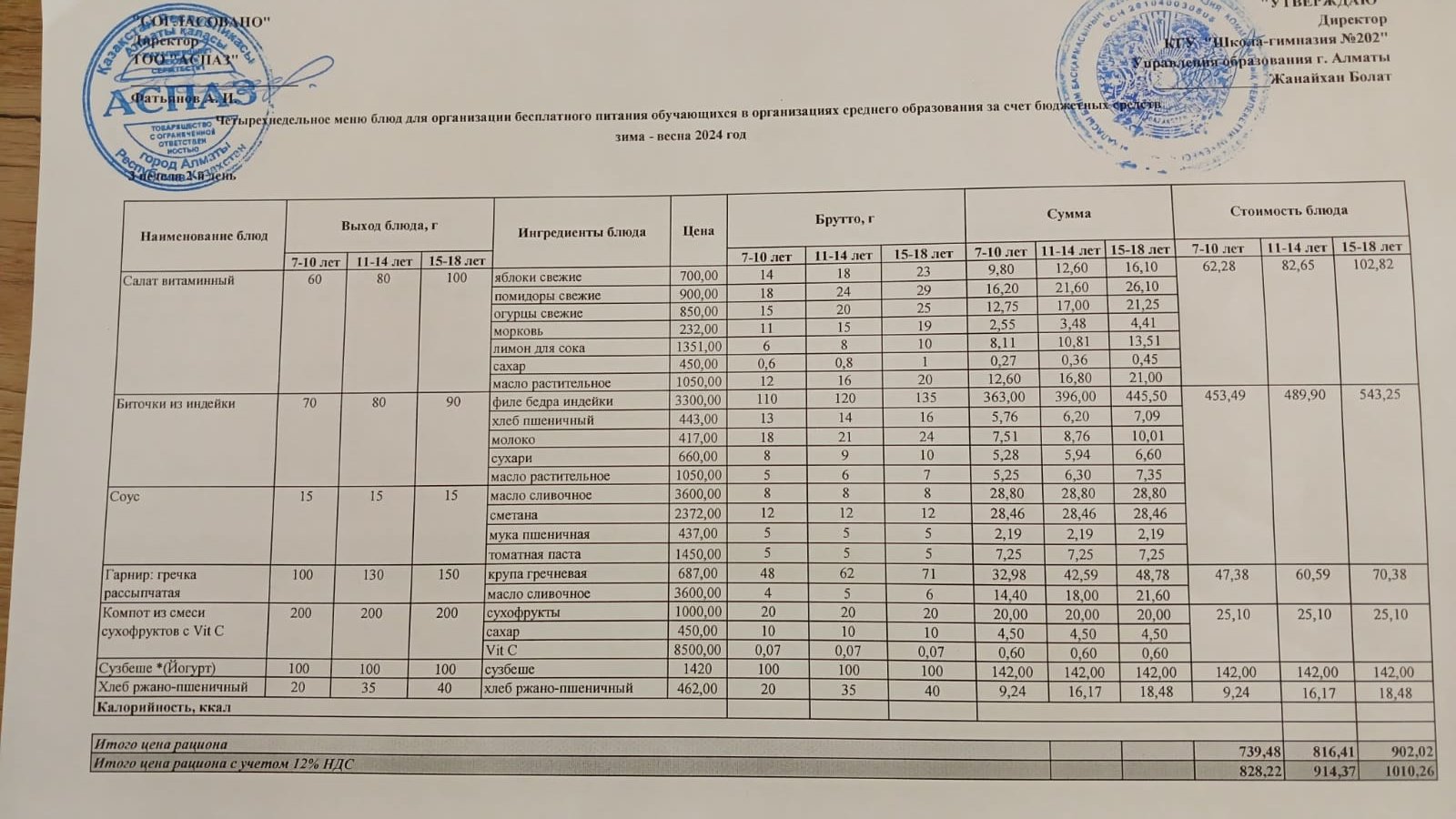 2023-2024 оқу жылы 21-мамыр ас мәзірі » №202 жалпы білім беретін мектеп