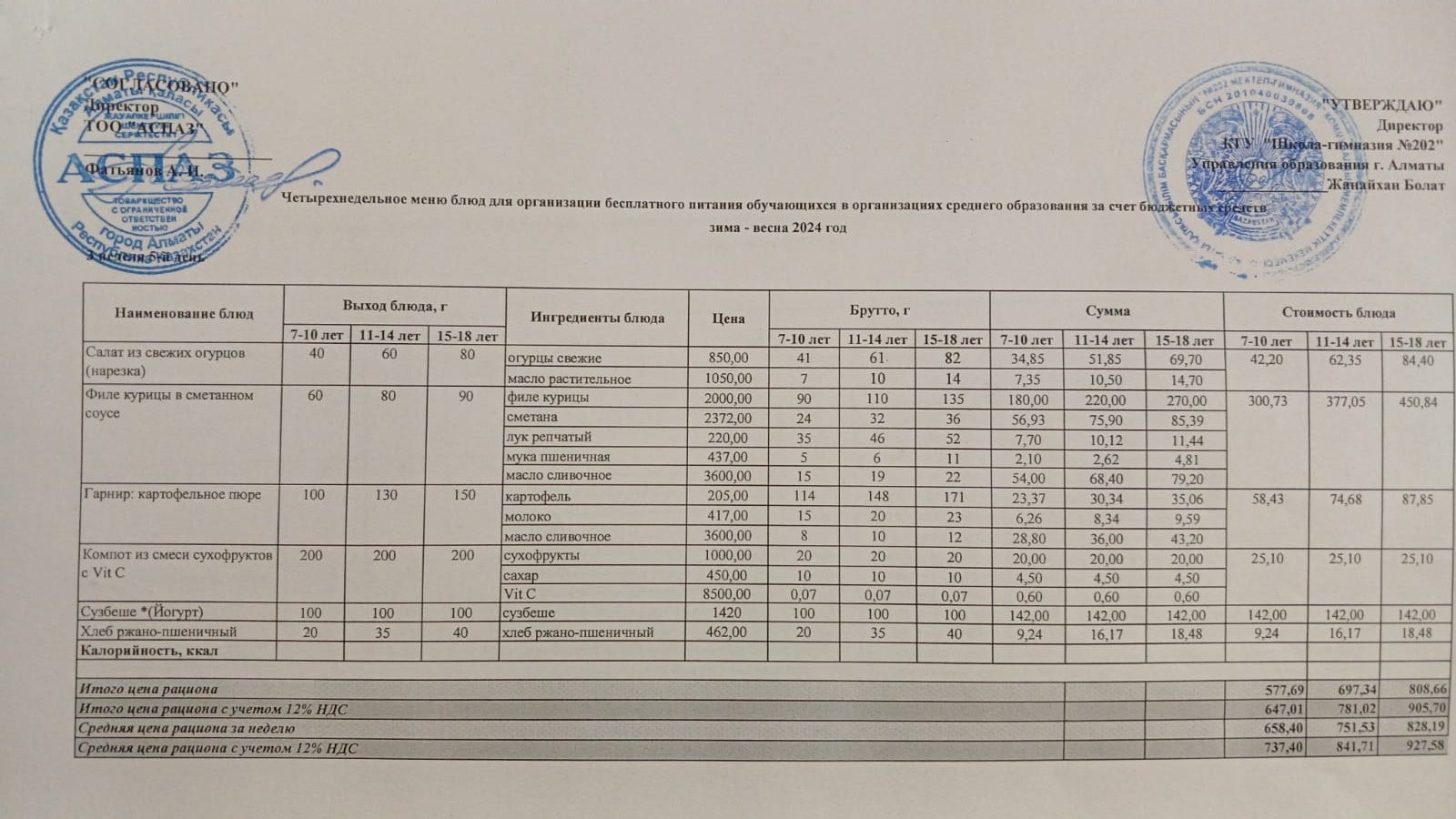 2023-2024 оқу жылы 24-мамыр ас мәзірі » №202 жалпы білім беретін мектеп