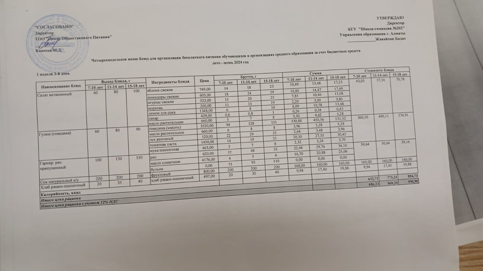 2024-2025 оқу жылы 2-қазан ас мәзірі » №202 жалпы білім беретін мектеп