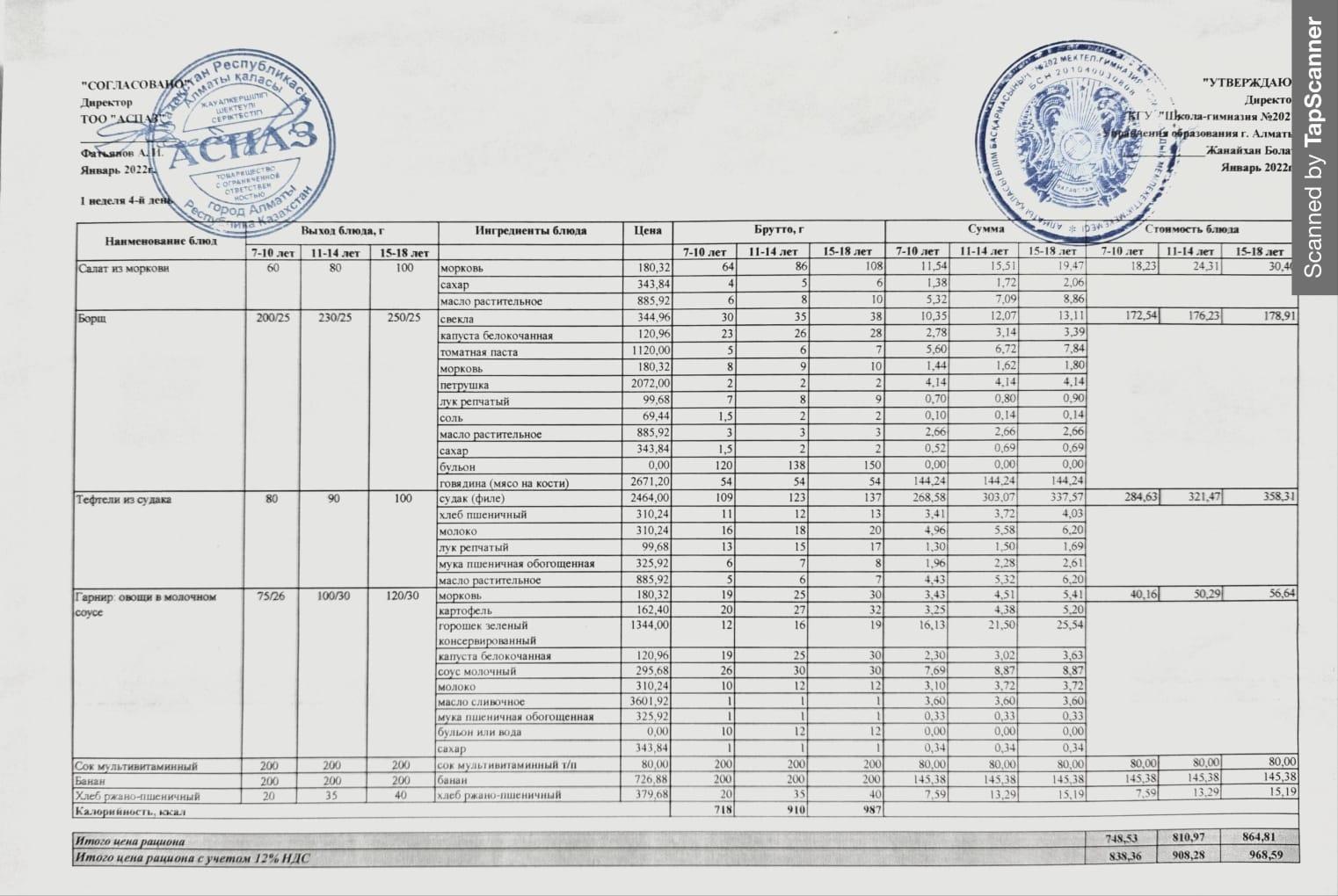 Күнделікті ас мәзірі 28.04.2022 » №202 жалпы білім беретін мектеп