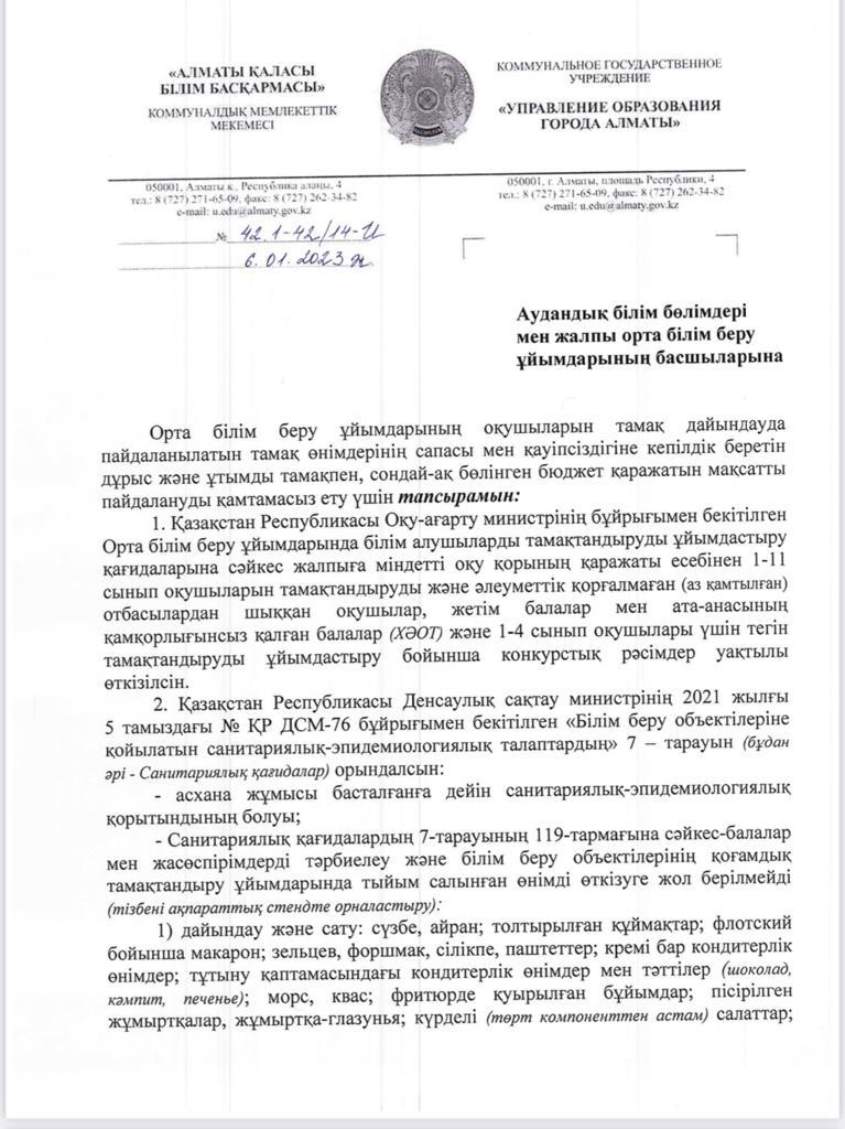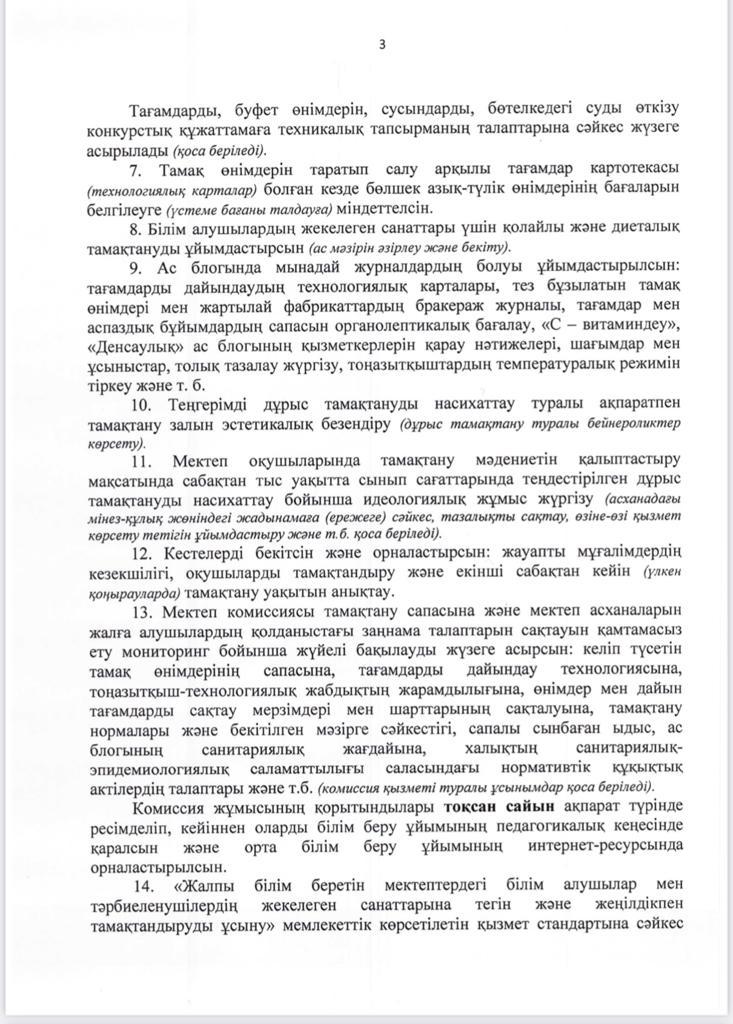 Тамақтану бұйрығы » №202 жалпы білім беретін мектеп