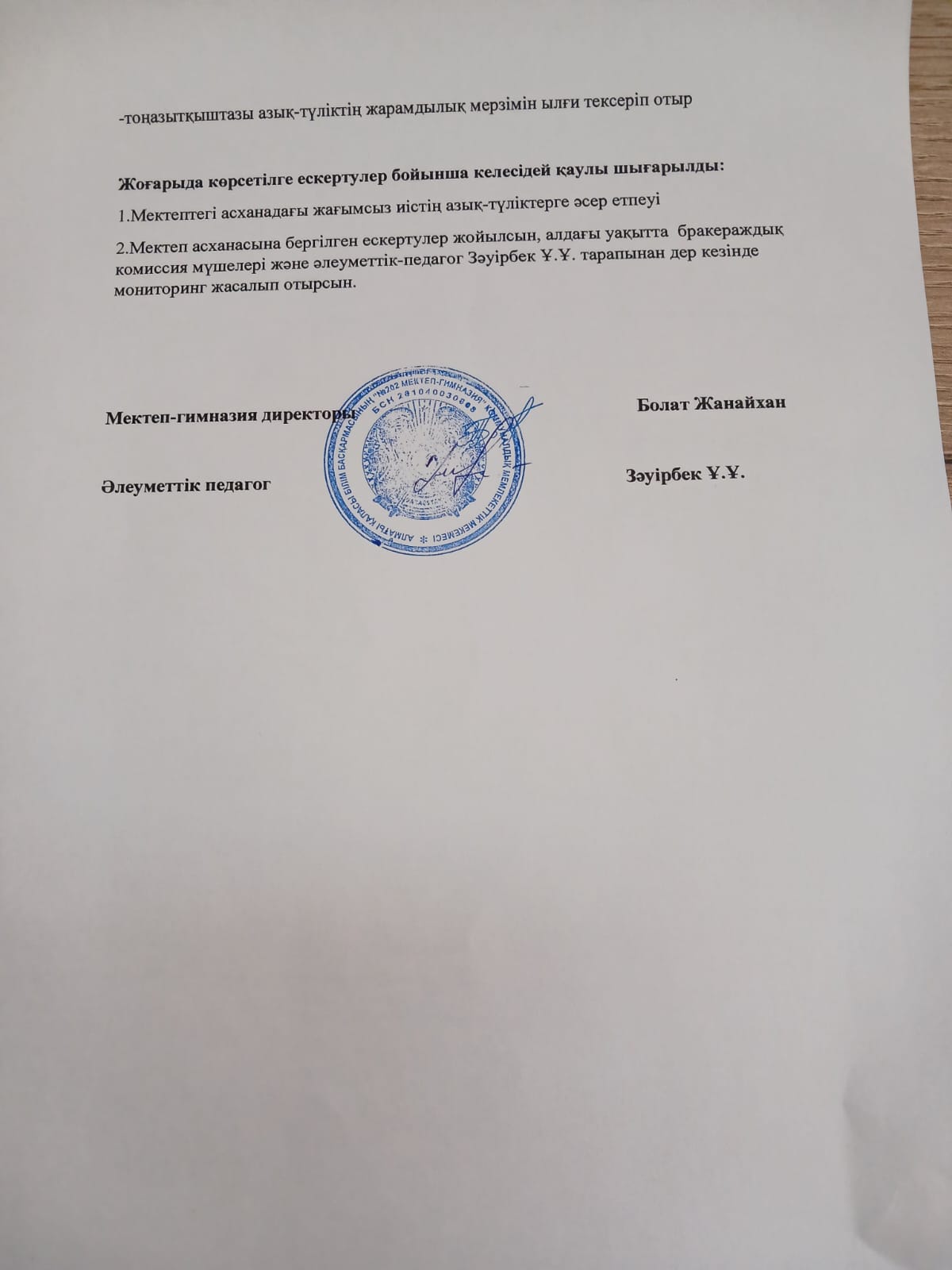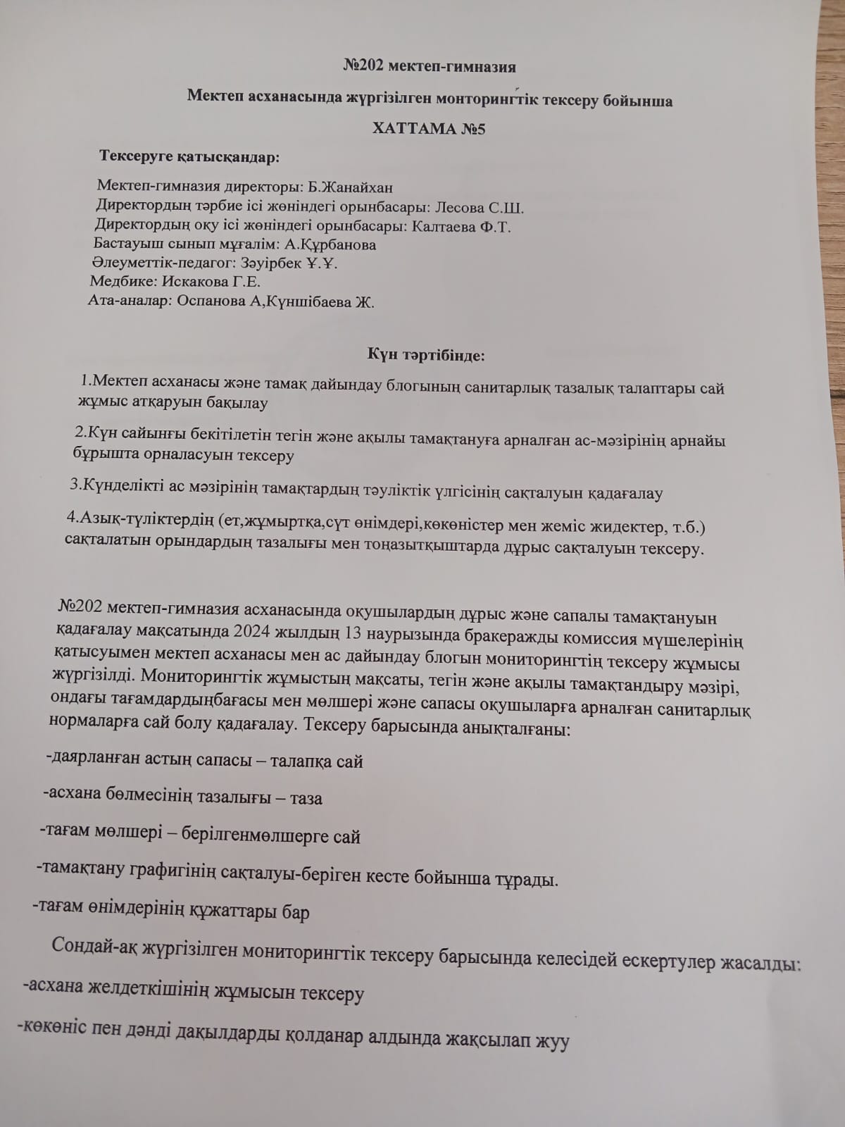 13 март 2024 0 1 2 3 4 5 2023-2024 оқу жылының 13-наурызындағы Бракеражды комиссияның мектеп асханасына мониторингтік тексеруі
