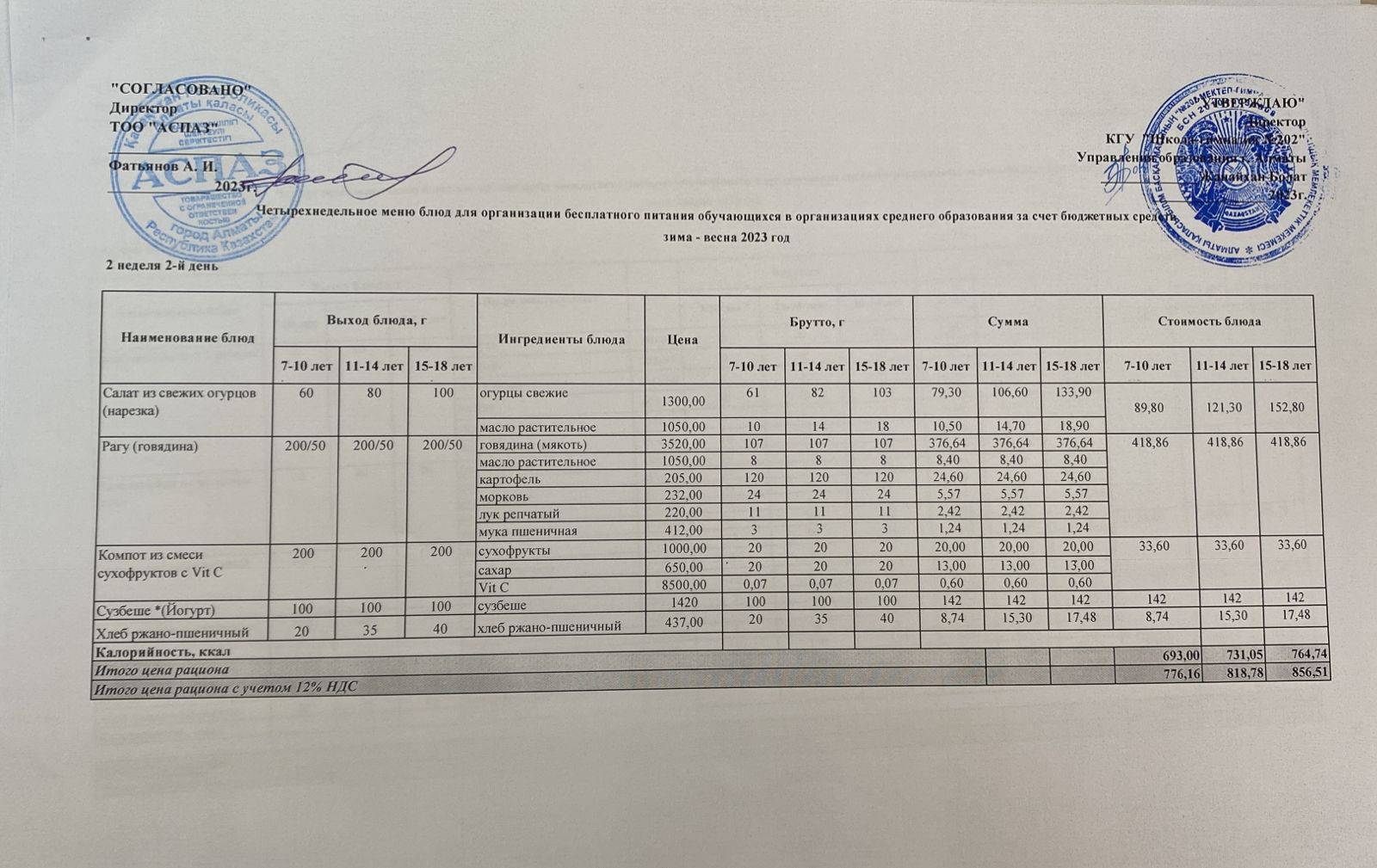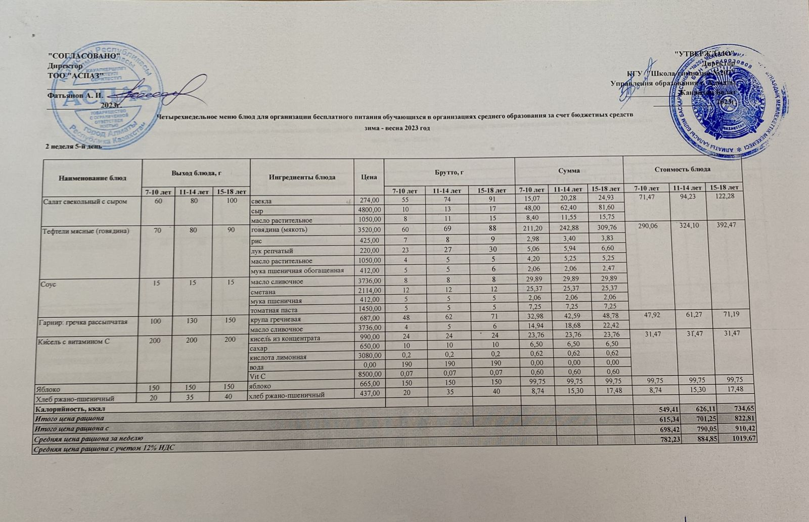 Ас мәзірі ақпан 2 апта » №202 жалпы білім беретін мектеп