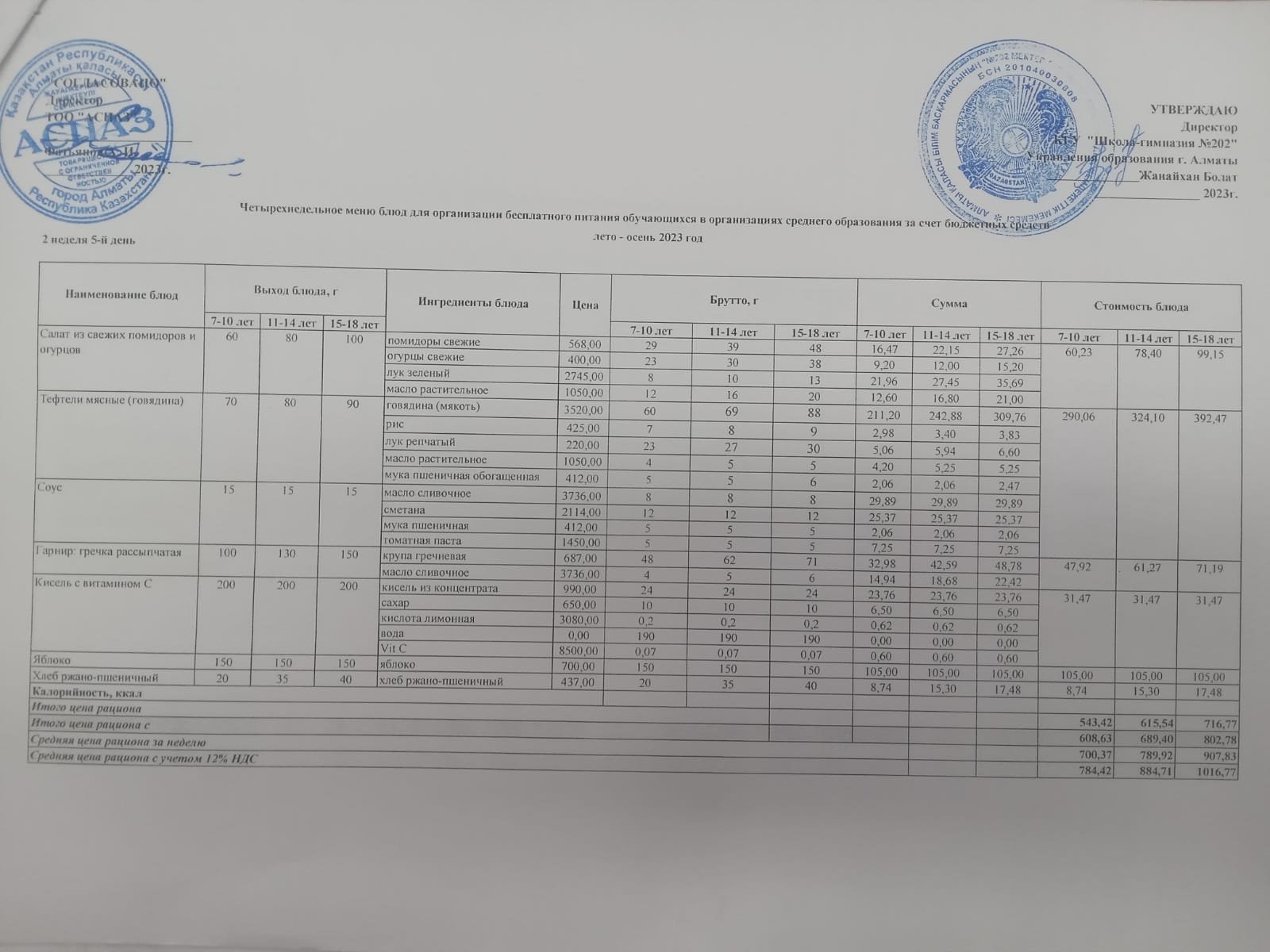 2023-2024 оқу жылындағы II-апта 5-күнгі ас мәзірі » №202 жалпы білім беретін мектеп