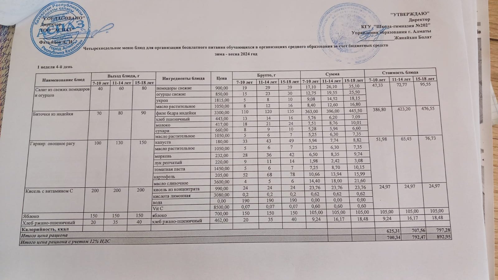 2023-2024 оқу жылы 4-сәуір ас мәзірі » №202 жалпы білім беретін мектеп