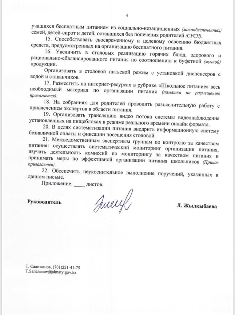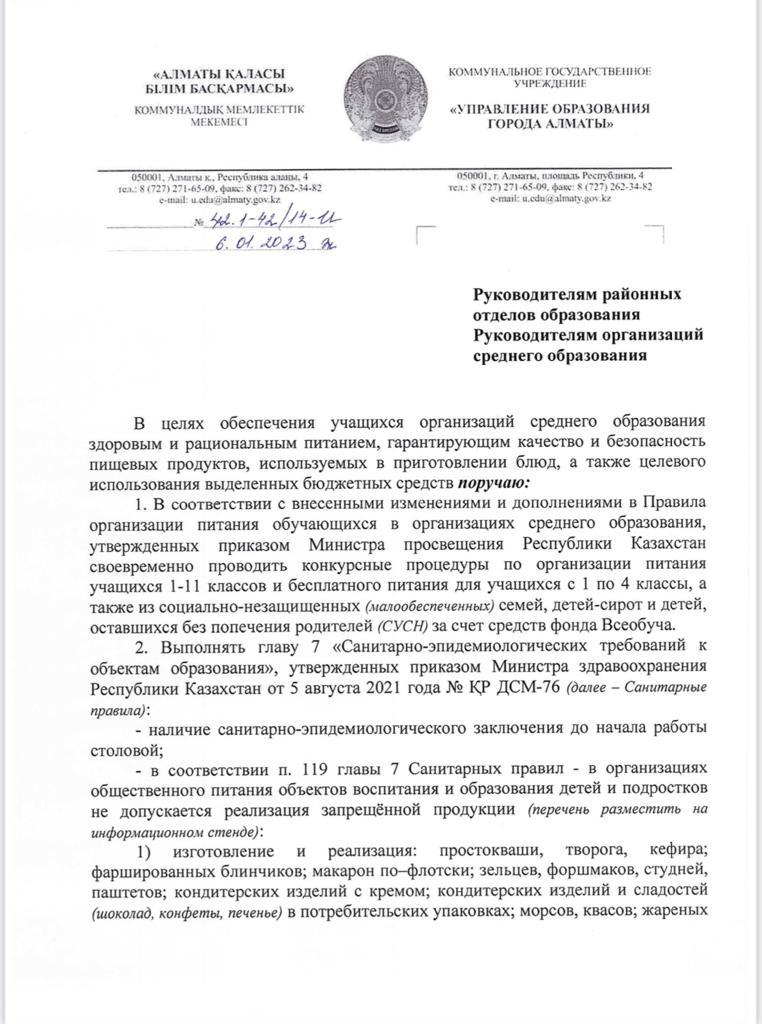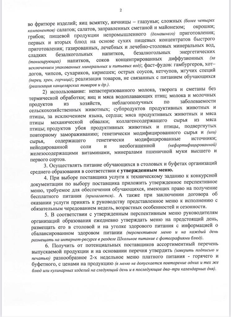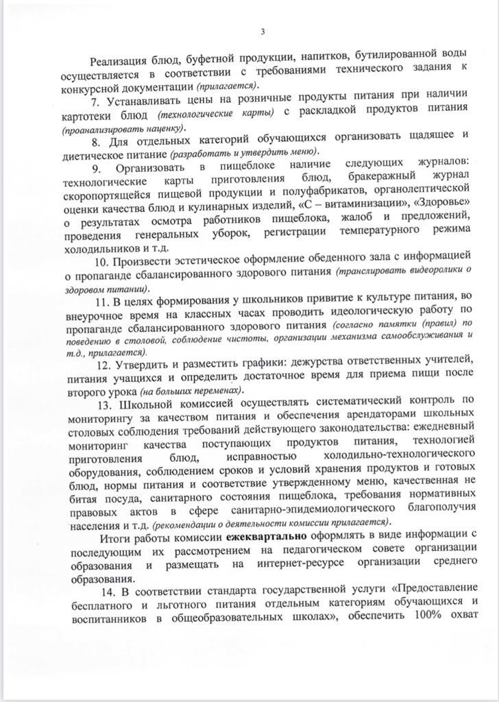 приказ об организации питания в средней школе » №202 жалпы білім беретін мектеп